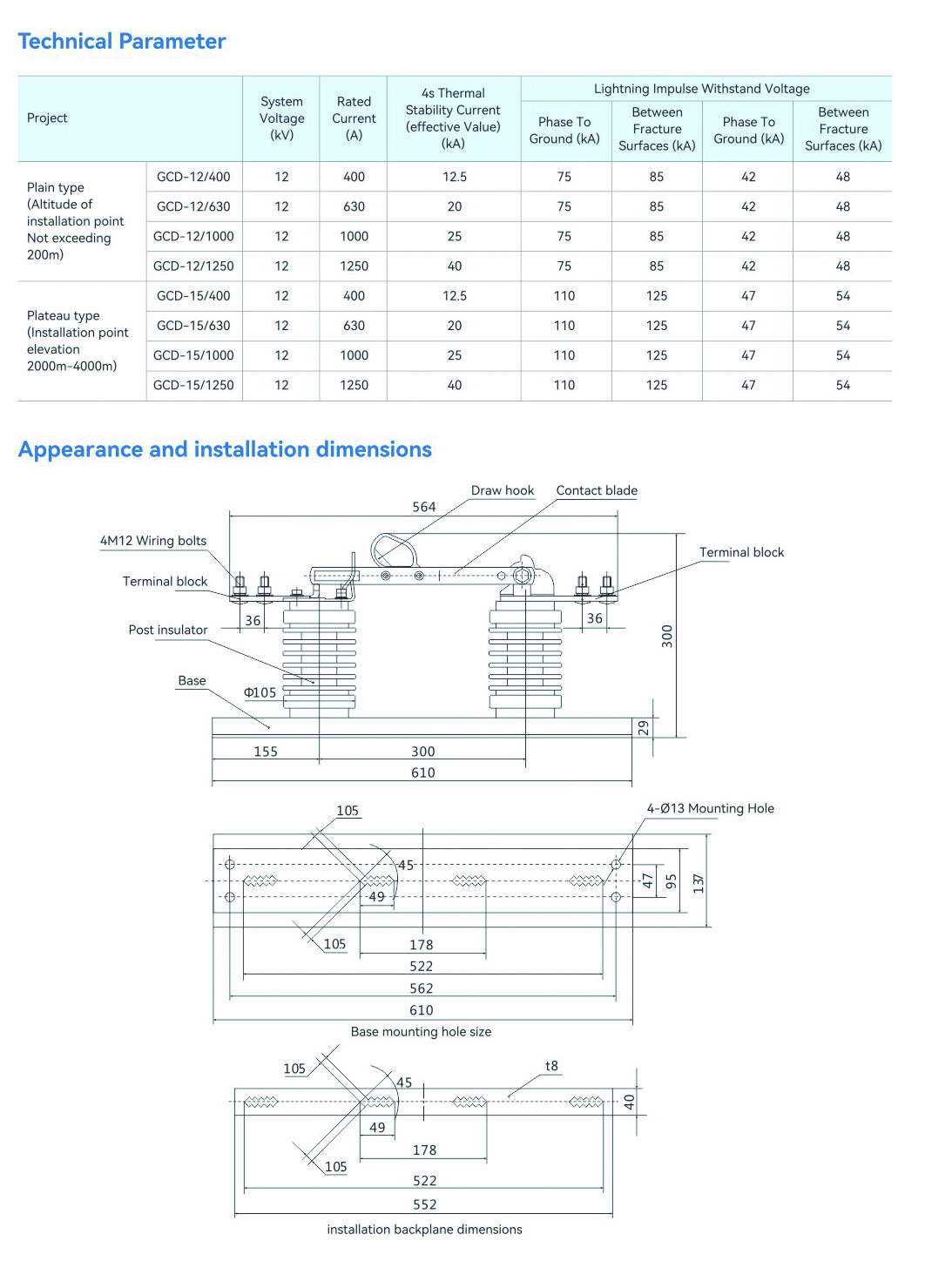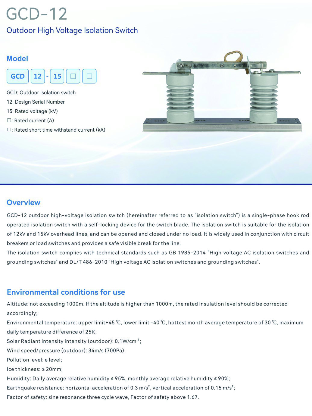GCD-12 Outdoor High Voltage Isolation Switch
